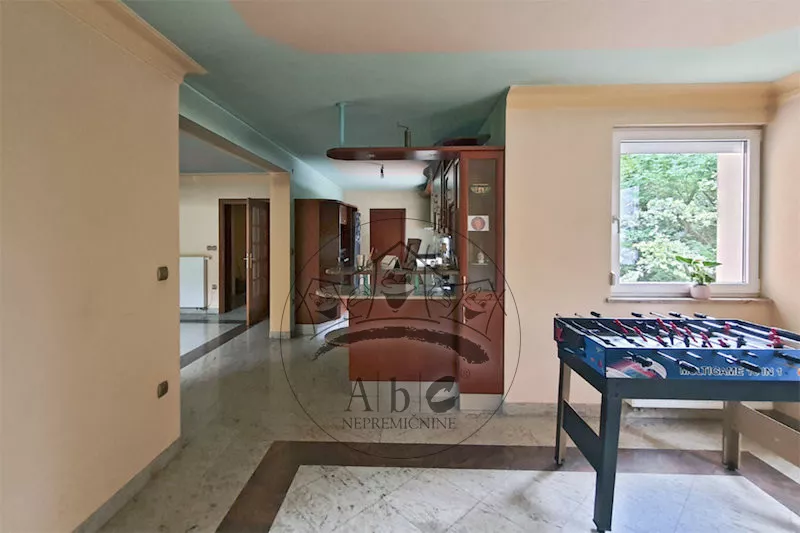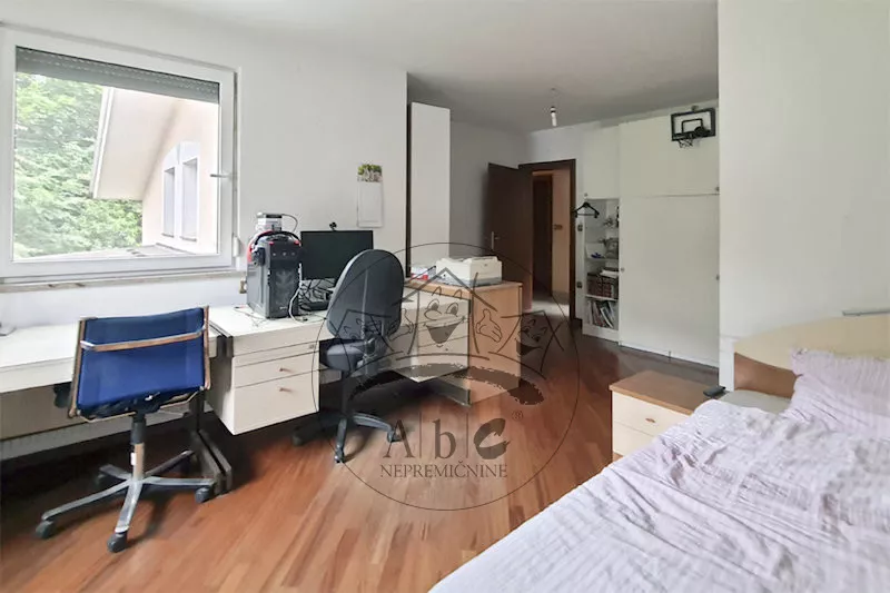 Za hišo je čudovit vrt, ki meji na zeleni pas.
