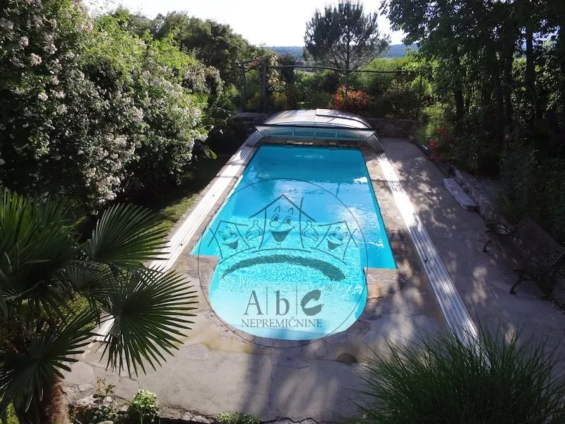 Vrt v skupni velikosti 21.237m2 (od tega 2.042m2 stavbnega zemljišča) obsega prečudovit park, bogat z drevesi kot so kostanj, lovor, oljka, palma ter okrasnim cvetjem (oleandri), posebno z vrtnicami, ki jih ne najdete marsikje (objavljeno tudi v številnih revijah, v TV oddajah Naši vrtovi in Ambienti). Večji del zemljišč se ohranja poraslih z avtohtonimi rastlinskimi vrstami. Znotraj vrta je veliko kotičkov za posedanje in uživanje v vonjavah in razgledu na okolico.