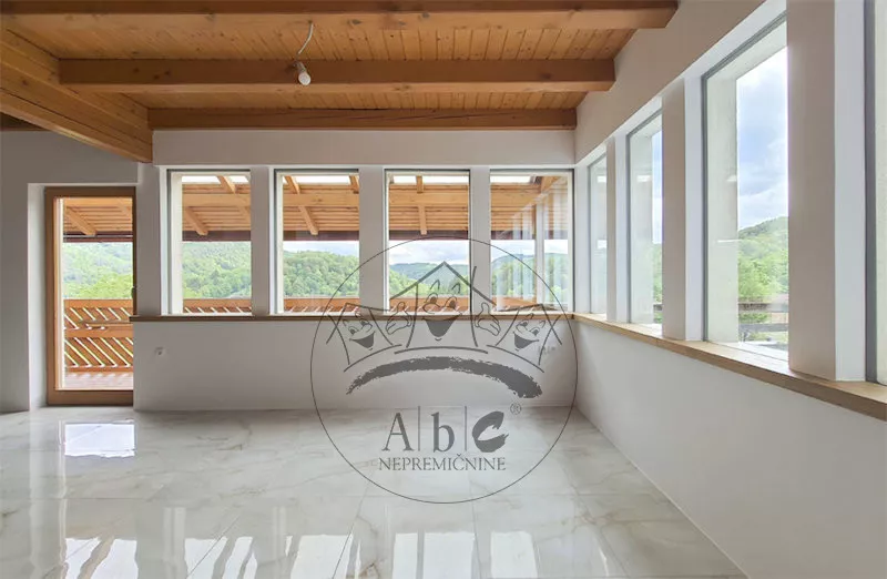Veliko steklenih površin omogoča obilico sonca in svetlobe, veliki, odprti prostori izredno prostornost, funkcionalnost.